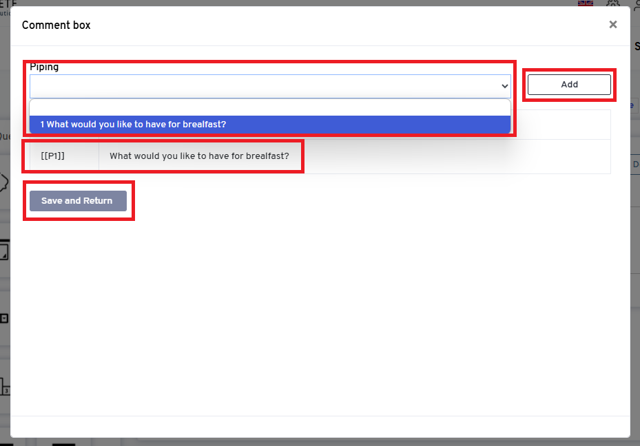 Example: If the option "pancakes" is selected in questioon one in the first page, then question Question 2 - Why do you think [[P1]] is the best option for you? appears as: Why do you think "Pancakes" is the best option for you.