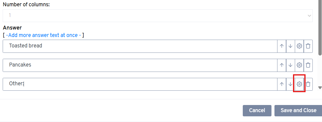 - Find the answer option you want to add a textinput option and click on it's settings icon